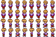 These codes are examples of creating an animated game character. The methods of the Simplegame game engine make it possible to add a series of images for a sprite. Those images are then shown as an animation. If you use some other set of images he size of the image and each frame may need adjustment to work properly but in this example they are already adjusted. In method character. loadAnimation the first two parameters are the width and the height of the whole image and the next two the width and height of one frame: calculate them from the image! The first code is just about the character and the second one has a background. The character goes freely on the background but if you want the houses or some other objects to stop it try adding more sprites on those places with transparent images and collision detection.